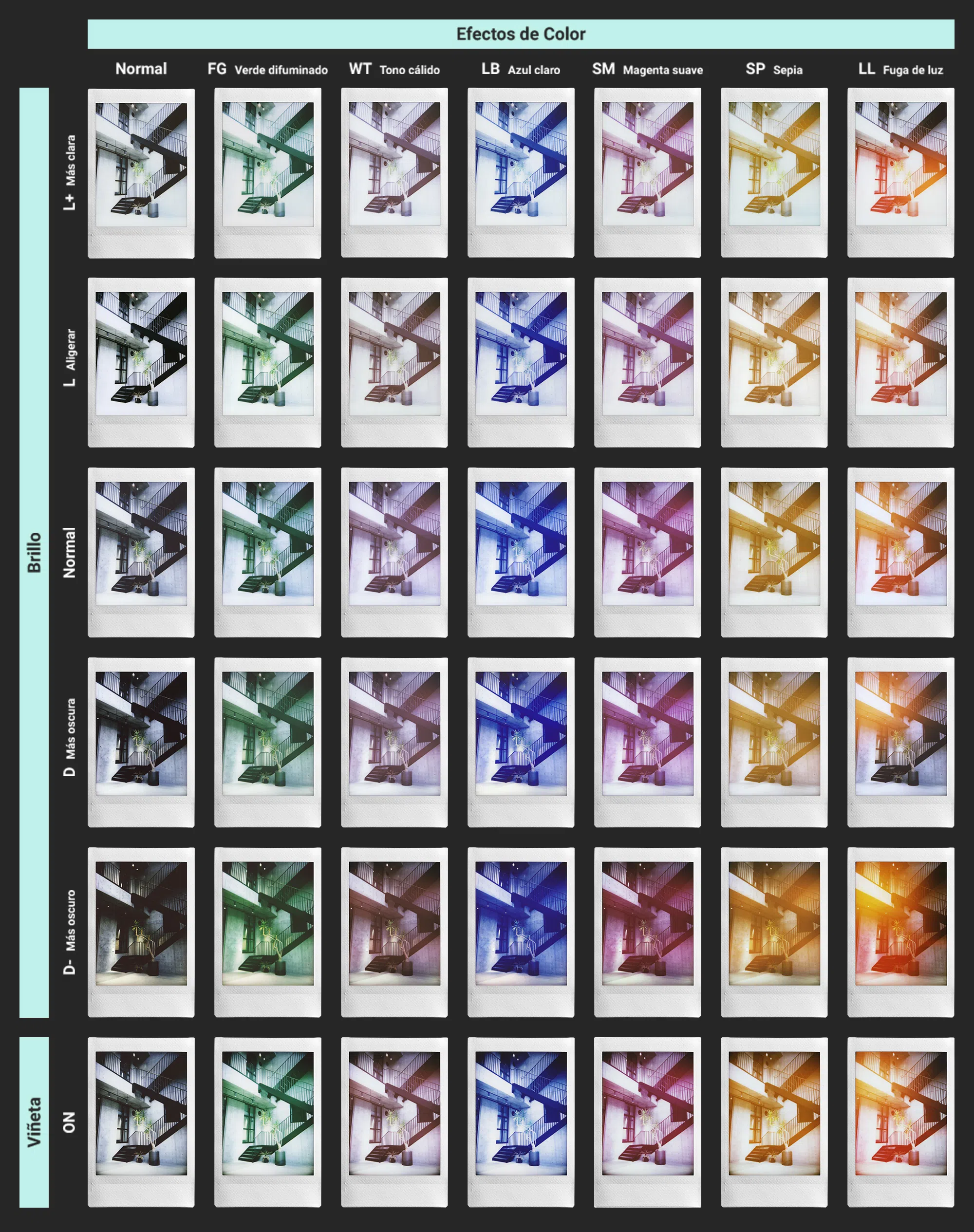 Utiliza el dial de efectos de color y tendrá seis asombrosos efectos de color analógicos para dar rienda suelta a su libertad creativa (todos gracias a LED que cambian de color situados en las cuatro esquinas del interior de la cámara).