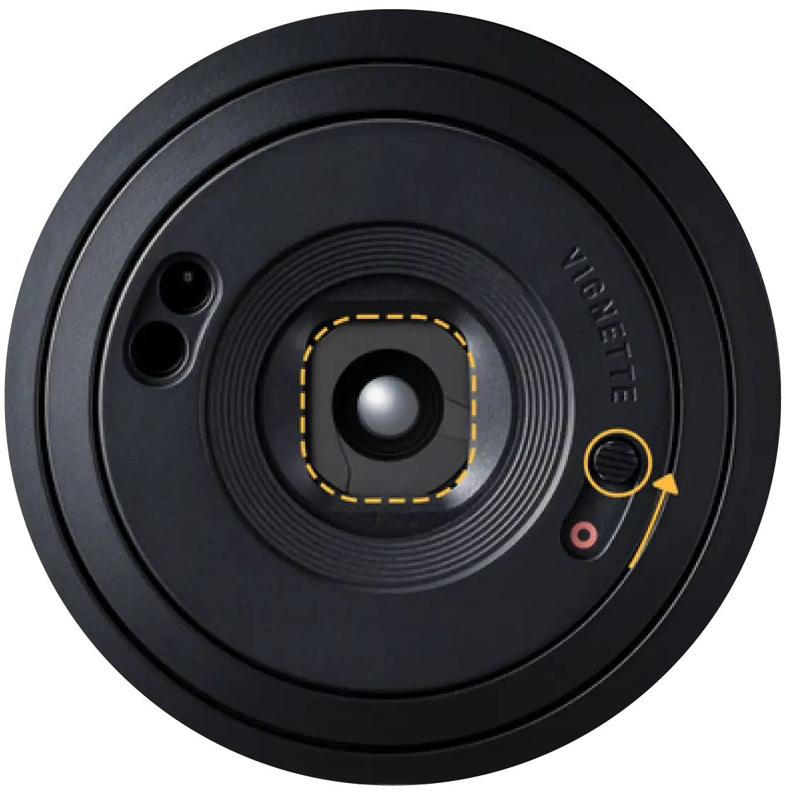 Ajuste manualmente el objetivo para reducir la luz periférica ¡y cree una sensación más artística en sus fotos! Cuando deslice el “Interruptor de viñeta manual”, las láminas del interior del objetivo sobresaldrán. La función de viñeta se aplicará disparando tal cual.
