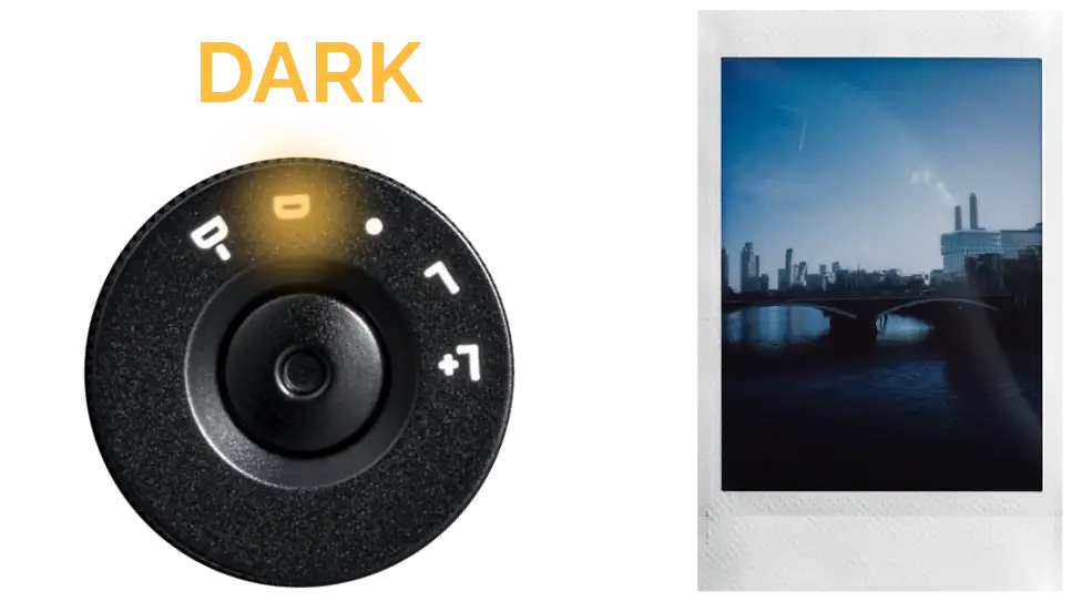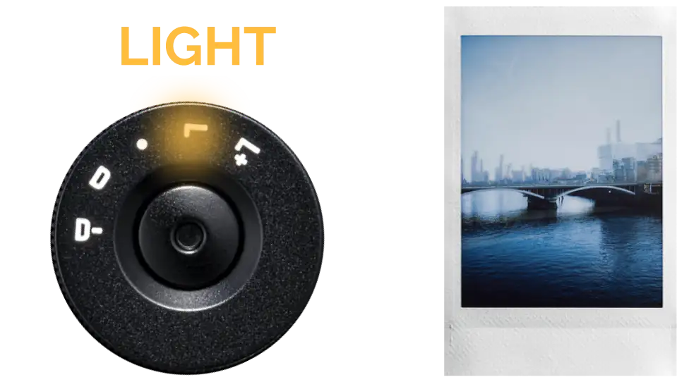 Utilice el dial de control de brillo para elegir entre cinco niveles de brillo. Combine este ajuste con efectos de color, exposición doble y más.